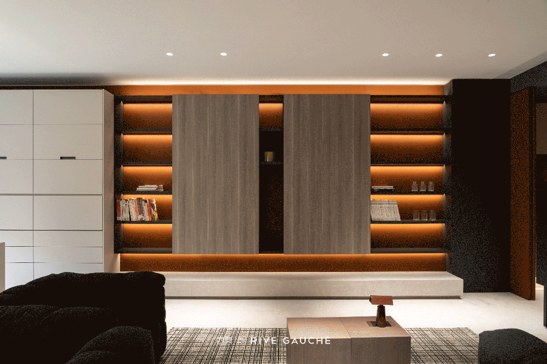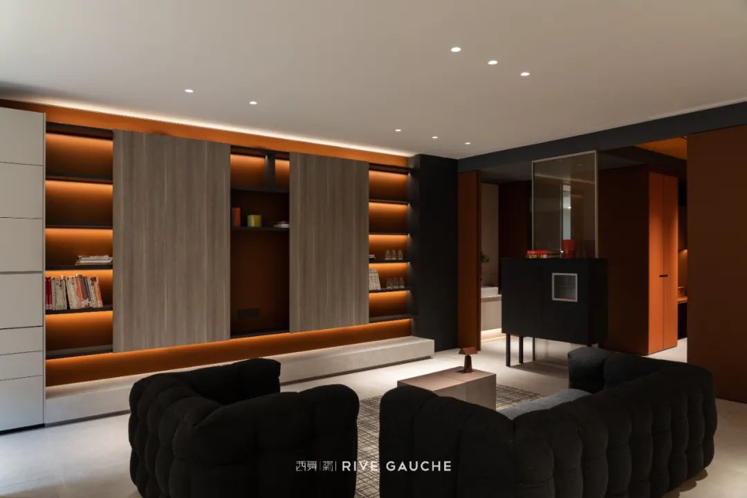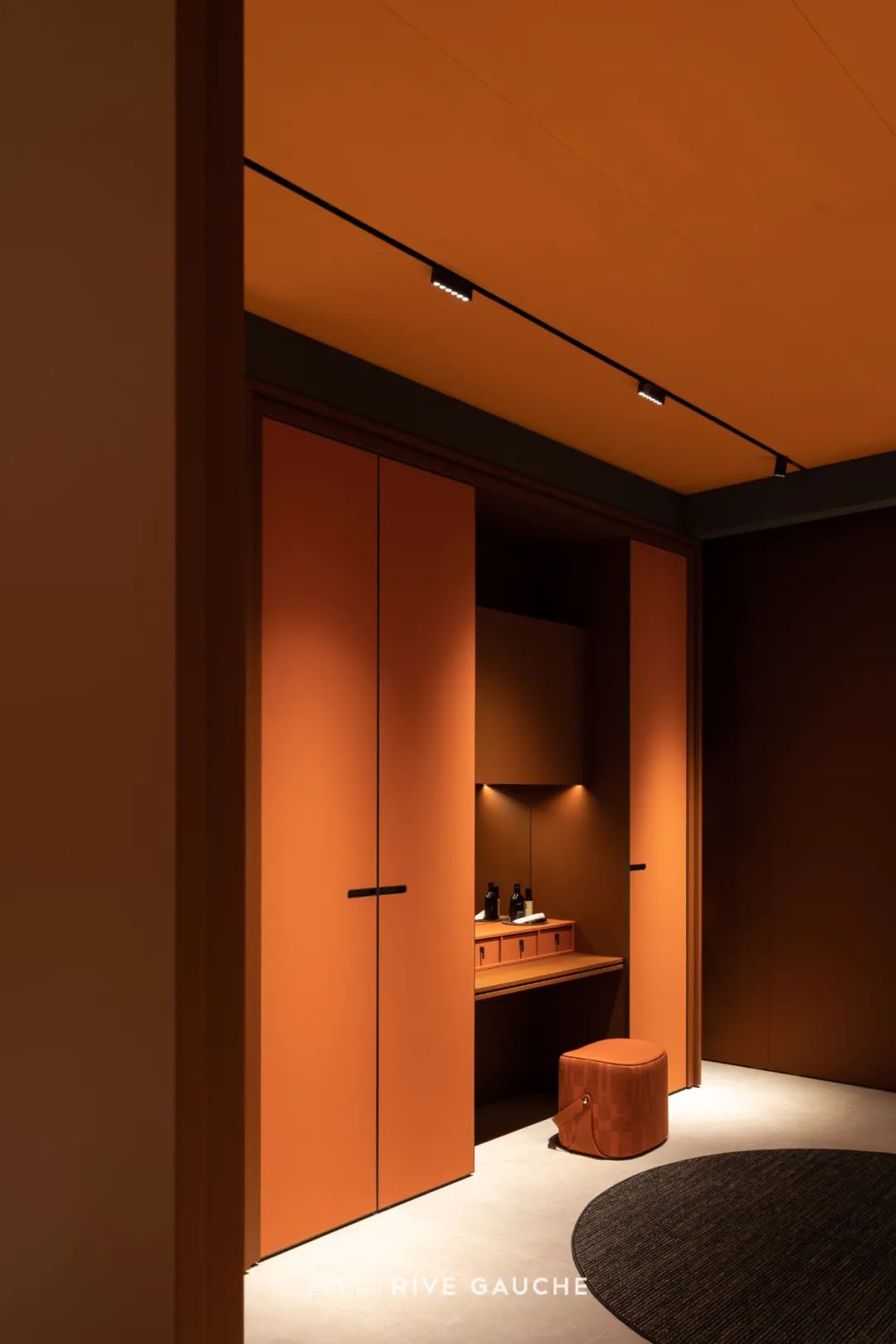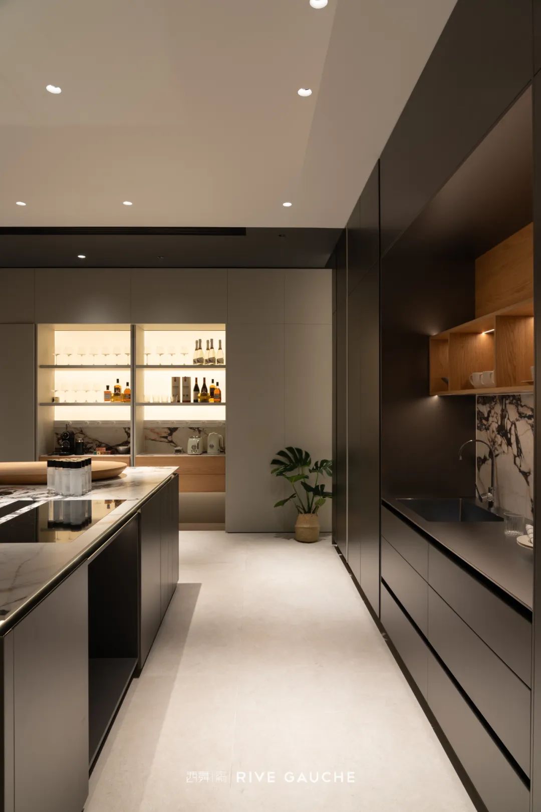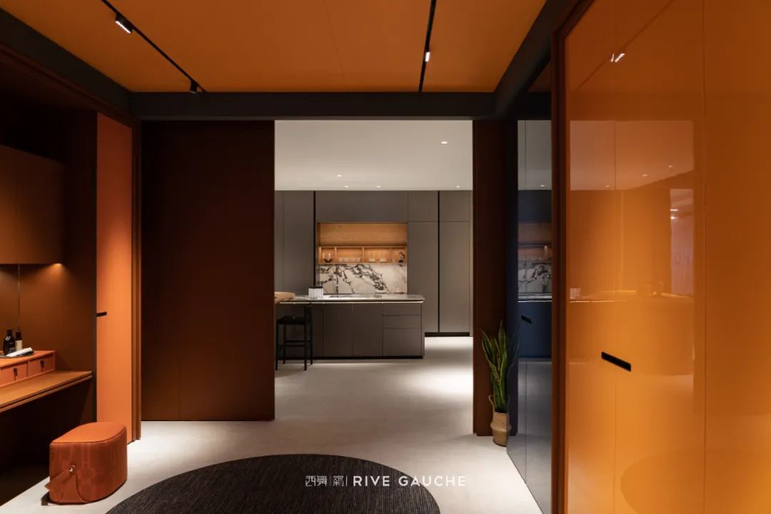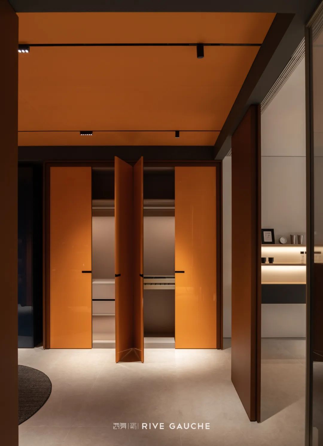 整个空间场景借以柜类产品的构成明修栈道的直抒胸臆,整体布设直来直往,极简与凝练的外在形态,是剔除了符号与标签之后的纯粹呈现
